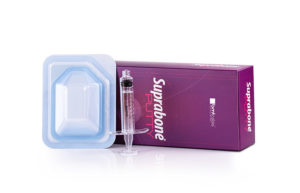 Suprabone Putty consists of two compounds provided to be merged before implementation. (Compound A and Compound B). Compound A is β-tricalcium phosphate (β-TCP), and Compound B is a cellulosic carrier. Suprabone Putty can be prepared in two different forms by mixing both of the compounds in specific proportions (refer to Implementation section below). This feature gives the surgeons the opportunity to prepare putty forms that are injectable or can be turned into dough before use, depending on the intended purpose. It is an osteoconductive support matrix that, when implanted, is biocompatible and injectable, and it supports the formation of new bone tissue in the defect area. Suprabone Putty is resorbed over time and, at the end, replaced by natural bone. The cellulosic carrier (Compound B) used in the preparation of Suprabone Putty is biocompatible and resorbed. it helps with vascularization by leaving cavities in the defect area as a result of fast degradation. Suprabone Putty does not contain tissues of human or animal sources, thus has no risk of communication of diseases. Details…